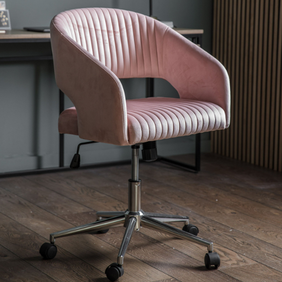 Elevate your workspace with the Furniture in Fashion Marry Velvet Swivel Home and Office Chair in Pink. Combining luxurious comfort with a sleek modern design, this chair is perfect for both home offices and professional settings. Its rich velvet upholstery adds a touch of elegance, while the ergonomic design ensures comfort and support for long hours of work or study. The Marry chair features a smooth swivel mechanism and adjustable height, making it highly versatile and functional. Its Pink velvet finish pairs seamlessly with any decor style, from contemporary to classic. Whether youre working, gaming, or simply relaxing, this chair brings style and practicality to your space. Upgrade your workspace with the Furniture in Fashion Marry Velvet Swivel Home and Office Chair in Pink. Its blend of luxury, comfort, and functionality makes it an essential addition to any office or study area. FEATURES : Material : Velvet ,Metal Finish : Pink ,Chrome Add a touch of glamour to a home office with this sophisticated swivel chair Upholstered in tactile Pink velvet which pairs beautifully with the silver base, the chair offers style, comfort and practicality The padded back and seat feature stitch detailing, whilst castors give easy manoeuvrability, plus there is tilt adjustment and gas lift seat height adjustment Soft Pink velvet adds sophistication and comfort Provides excellent support for the back and promotes good posture Effortless 360-degree rotation for flexibility and convenience Customizable seat height to suit your desk or workspace Built with high-quality materials for long-lasting use Features a strong metal base for stability and smooth mobility Perfect for home offices, professional workspaces, or study areas Available at an affordable price Images shown are for illustration purpose only DIMENSIONS : Height : 960mm Width : 565mm Depth : 560mm